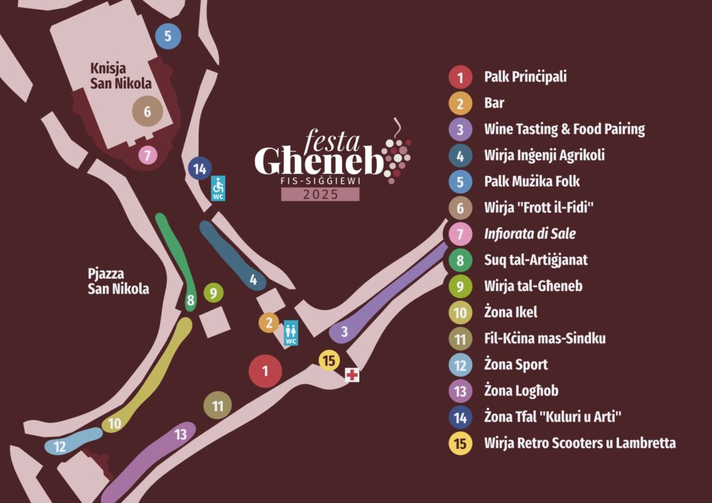After more than ten years of organic growth, Festa Għeneb had developed into a complex, multi-zone event, but its visual communication had become fragmented. The 2025 edition sought to elevate the festa by introducing clarity, legibility, and consistency, without distancing it from its agricultural and communal roots.