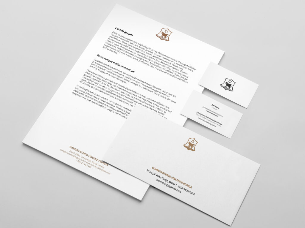 Conservatorio Vincenzo Bugeja now has a complete logo system, made up of a reinterpreted wordmark and a monogram rooted in the institution’s own architectural detail. The formal tone of the identity is reinforced through a restrained colour palette drawn from the apertures of its buildings. Core stationery and templates were developed to standardise communication, alongside a website design that introduces the Conservatorio to the public for the first time. The result is a clear, formal identity that holds its ground—practical, recognisable, and aligned with the institution’s enduring role.